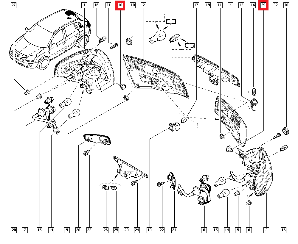 Página inicial | Koleos / QM5 (2008) | Iluminação | 0155309611 - Clip iluminação farolins trás